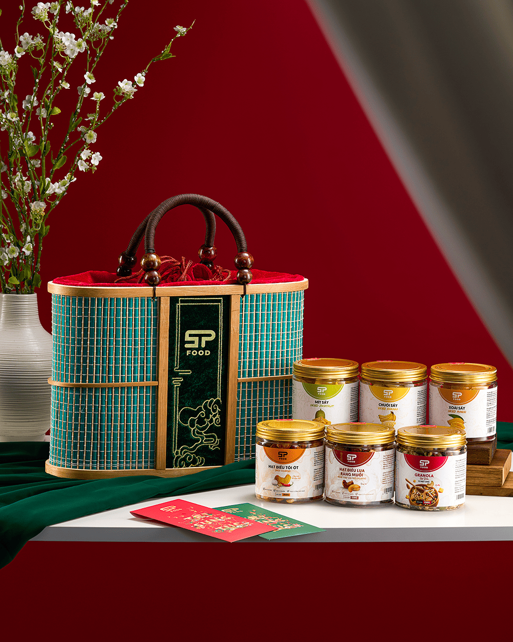 Xuân Đại Cát là set quà cao cấp nhất trong bộ sưu tập Tết 2026 của STP Food, được thiết kế dành riêng cho những ai yêu thích sự mộc mạc nhưng đầy tinh tế. Điểm nhấn đặc biệt của set quà này chính là chiếc giỏ được làm bằng chất liệu tre đan thủ công tỉ mỉ, chắc chắn và có độ bền cao theo thời gian. Với thiết kế tay cầm vừa vặn, giữ form chuẩn, đây không chỉ là món quà tặng mà còn là phụ kiện hoàn hảo để phái đẹp diện cùng áo dài, tạo nên những khung hình đón Xuân rạng